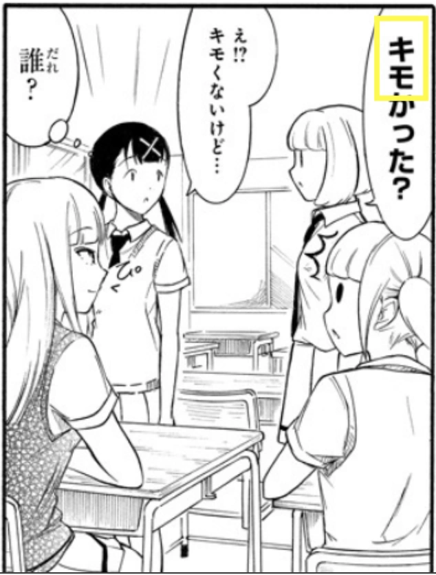 - "キモい!キモい!": This is of course Uchi's catchphrase silent description of Tomoko. However, she has openly called Tomoko "disgusting" in front of her friends in Chapter 152, and, for some reason, she seems to expect others to understand what she means. WataMote Wiki could speculate at length what "disgusting" actually means to Uchi but that would send the readers screaming into the night. However, readers may take some comfort that subsequent chapters make it more clearer . . . or not . . . probably. . . .
