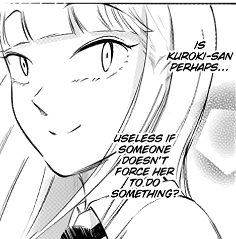 - "Is Kuroki perhaps . . . useless if someone doesn't force her to do something?" – Asuka about Tomoko