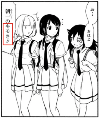 and Uchi thinks, "First thing in the morning disgusting!" Tomoko asks if they are "close." Yuri responds that they were only walking together since they take the same train. Uchi thinks that while that may be true, Yuri's bluntness is why she has no friends.