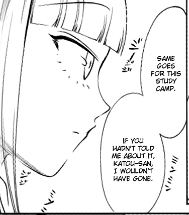 She then suggests that Yū has been studying hard, then adds that if Yū goes to the camp, she will also.