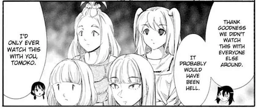 Tomoko continues that it was good that they did not watch this with everyone else as she imagines Akane, Hina, Uchi, and Asuka watching: "That would be Hell, probably." Yuri replies that she would only watch it with her: "I figured that if it were you, you would understand it."