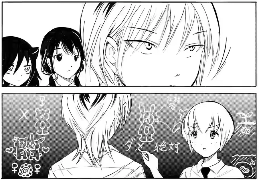 Exactly what Mako intends by drawing the male bear bouncing his "seed" off of the female bunny's head, WataMote Wiki will leave to the chaste and steady Noble Reader to determine.