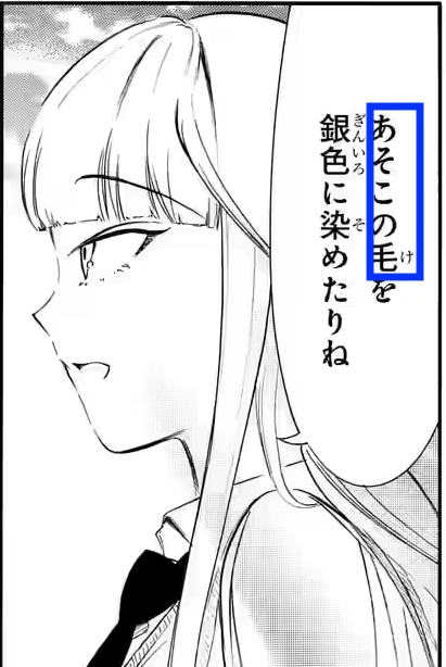 - "Mojyomon Gold and Silver": Asuka simply responds to Kiko pointing out all the embarassing things Tomoko did with "She dyed her lower hair silver too.", referring to Chapter 170.